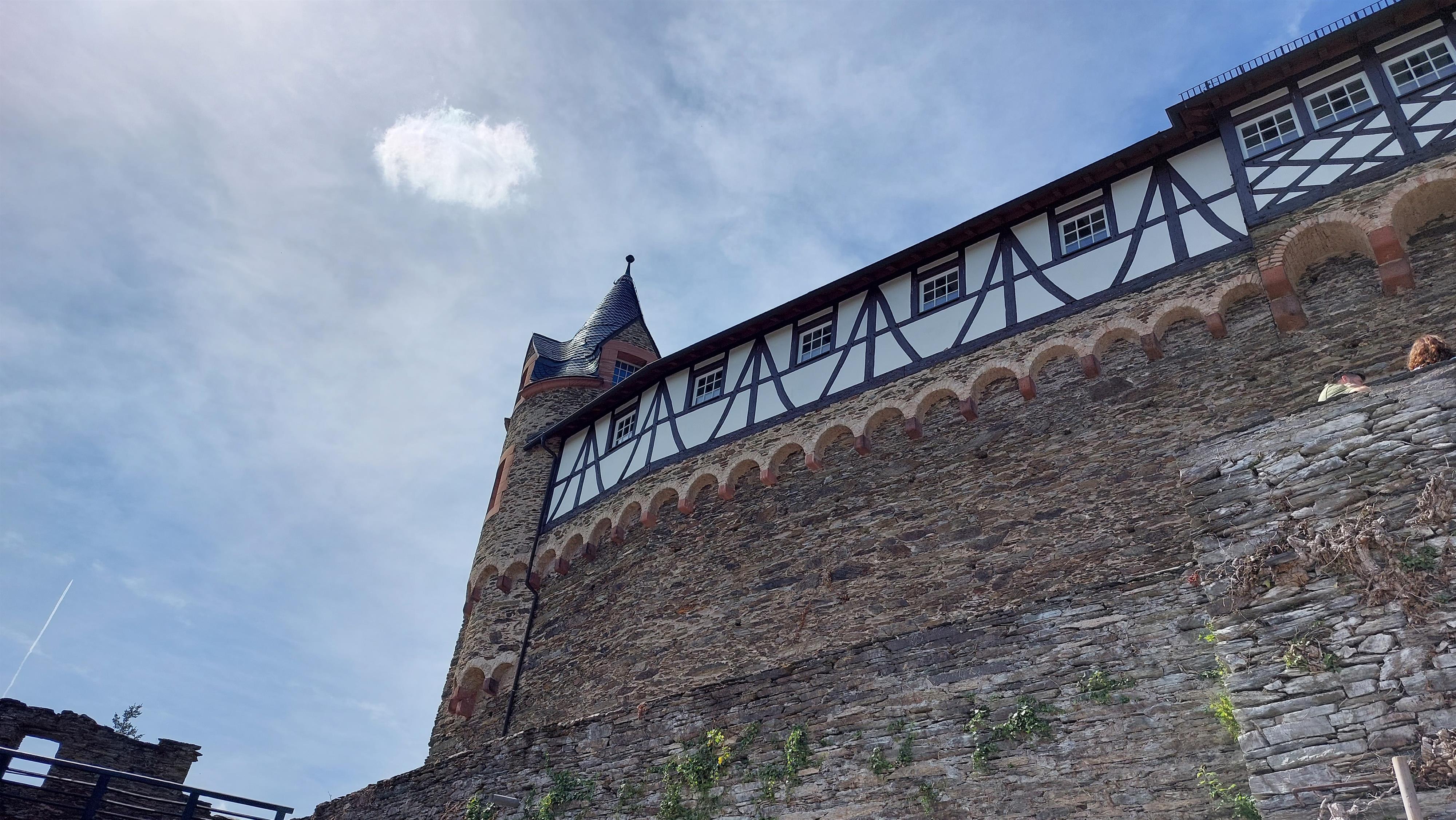 Pfalzgraf Ruprecht I. von der Pfalz erhielt im Jahr 1355 vom Mainzer Erzbischof die Erlaubnis zum Bau einer der stärksten Grenzfesten im heutigen Welterbegebiet. Die Sauerburg, malerisch und abgeschieden bei Sauerthal gelegen, fällt vor allem durch ihren stattlichen, 32 Meter in die Höhe ragenden Bergfried und ihre hohe Trennmauer mit Fachwerkaufsatz auf. Trotz der Erweiterungen und des historisierenden Ausbaus aus dem frühen 20. Jahrhundert verfügt die Anlage über eine beachtliche Denkmalschutzsubstanz. So vermittelt sie ein authentisches Bild einer starken, spätmittelalterlichen bis frühneuzeitlichen Burg.