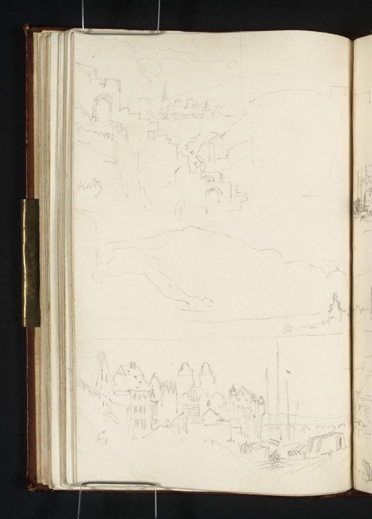 Den Nachmittag des 24. August 1817 nutzt Turner, um die Umgebung von St. Goarshausen zu erkunden. Er klettert in Richtung Burg Katz, von wo aus die Skizze zu dem Aquarell entsteht, das er nach seiner Rückkehr in London anfertigte. Den Hauptteil des Bildes nehmen schroffe Felsen und Gemäuer ein, ein eigenwilliger und bemerkenswerter Bildausschnitt. Der Blick fällt stromaufwärts, wo das hell ausgeleuchtete Tal sowie Burg Rheinfels dargestellt sind. Auffallend sind ebenfalls die Ruinenteile der Burg Katz in der Bildmitte, die in dieser Form nicht existieren. Dort hat Turner eine einsame Gestalt in einen Torbogen gestellt, um die Proportionen des Bildes zu verdeutlichen. Farblich ist das Motiv fast monochrom anmutend mit wenigen Gelb- und Brauntönen. Burg Katz befindet sich heute in Privatbesitz und kann nicht besichtigt werden.